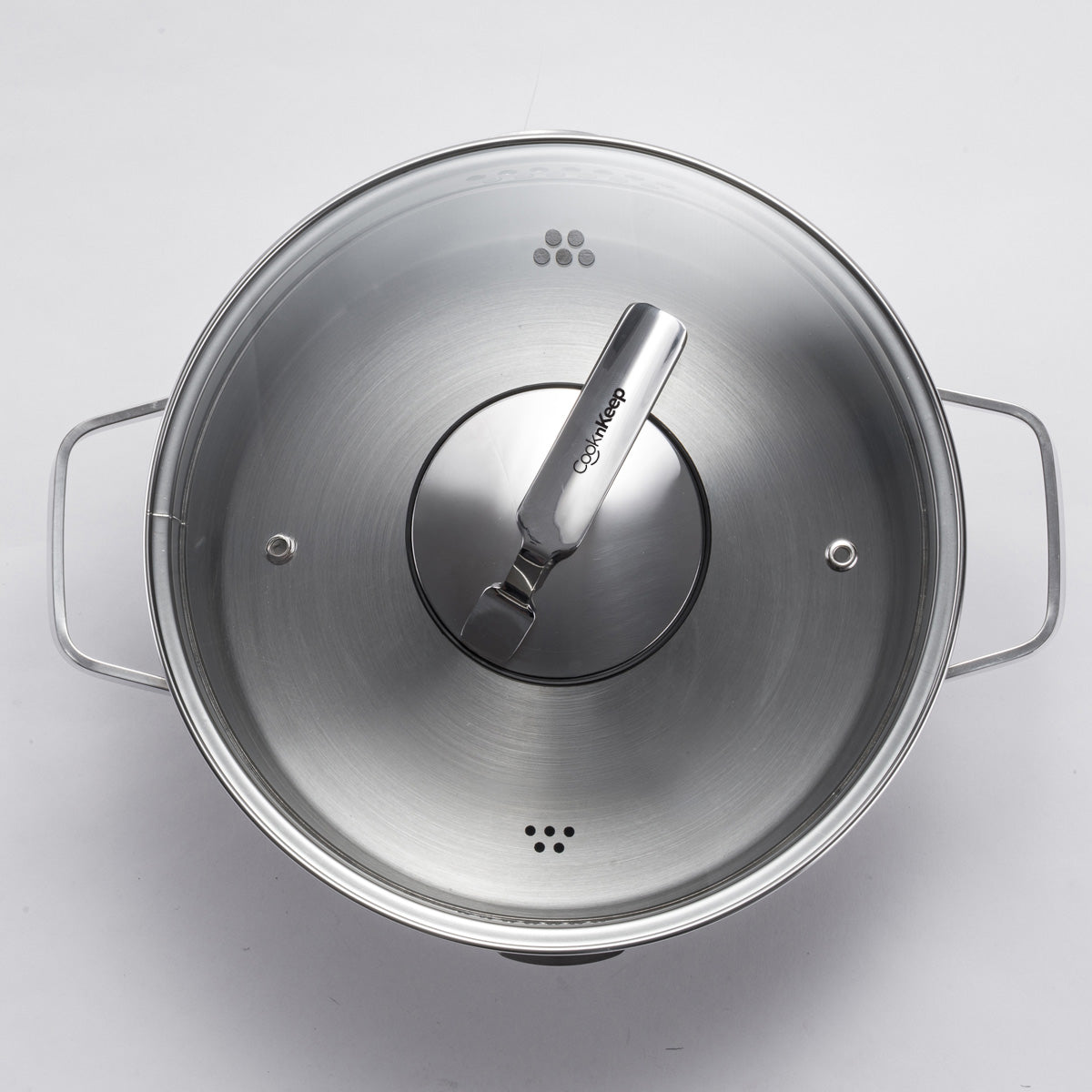 Cooknkeep çelik tencere serimiz, modern mutfakların tüm beklentilerine cevap vermek üzere tasarlandı. İndüksiyon dahil tüm ocak tipleriyle uyumlu olan bu seri, aynı zamanda fırın kullanımına da uygun yapısıyla profesyonel mutfak performansını evlere taşıyor. Tencere içini gösteren cam kapak, gövdede sıvıları kolayca ve kontrollü dökmeyi sağlayan özel döküm ağızlığı, kapakta çift seçenekli süzgeç alanı ve tavada yapışmayı azaltan özel taban deseni ile kullanım konforunu en üst seviyeye çıkarıyor. Her yemekte ustalığı hissetmeniz için tasarlandı.Yüksek kaliteli paslanmaz çelik gövdesi, indüksiyon dahil tüm ocak tipleri ve fırın kullanımı ile kusursuz uyum sağlar. Dayanıklı çelik yapısıyla uzun yıllar mutfağınızın vazgeçilmezi olur.