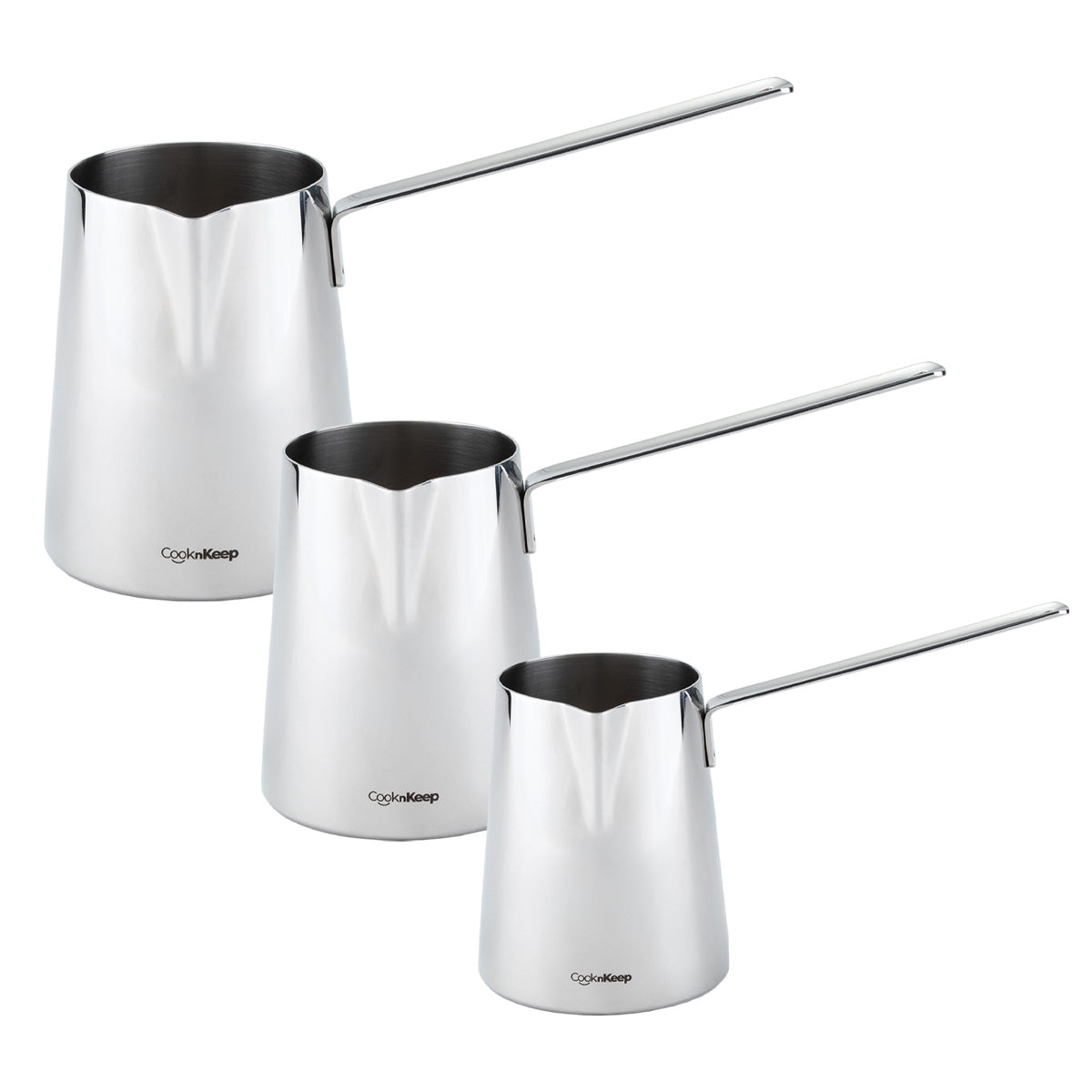 CooknKeep Cezve, yüksek ısıya dayanıklı yapısıyla kahve, süt, soslar ve çesitli içecekleri güvenle ısıtmanıza olanak tanır. Ergonomik sapı uzun kullanımlarda dahi rahat bir tutus saglarken, ısıyı esit sekilde dagıtan tasarımıyla homojen pisirme performansı sunar. Her kullanımda lezzeti ve konforu bir arada yasayın!