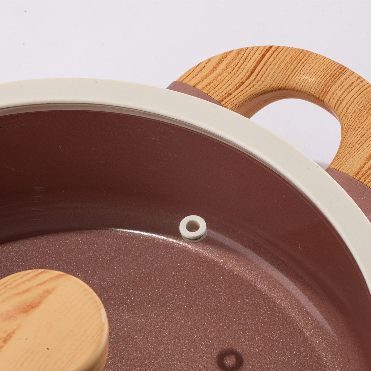 ✅ Ahşap Görünümlü Bakalit Saplar: Isıya dayanıklı, el yakmaz ve estetik bir görünüm sunar.