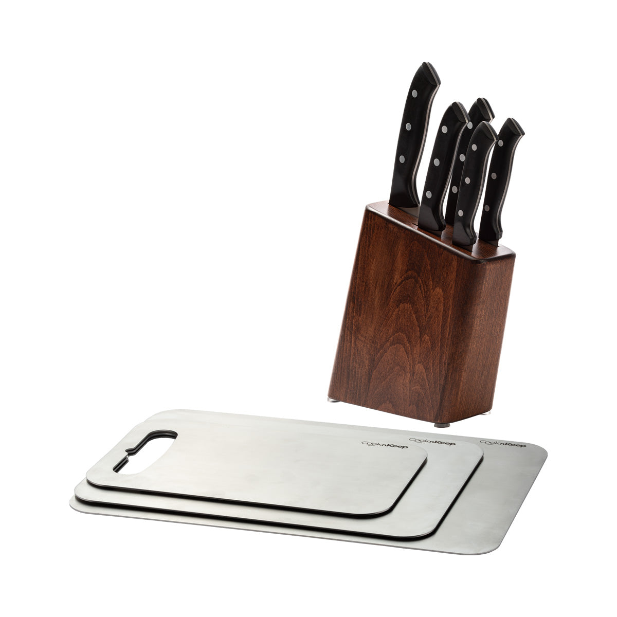 Mutfakta keskinlik, hijyen ve sıklıgı bir arada sunan CooknKeep Dograma Seti, profesyonel performansı evinize getiriyor. Set içerisinde yer alan Chef Serisi Bloklu 5'li Bıçak Seti, farklı kesim ihtiyaçlarına göre tasarlanmıs ergonomik ve paslanmaz bıçaklarıyla kusursuz dogramalar saglar. Gastro Çelik Kesme Tahtası 3’lü Seti ise kaymaz yapısı ve saglam yüzeyiyle hijyenik, konforlu bir dograma alanı sunar.