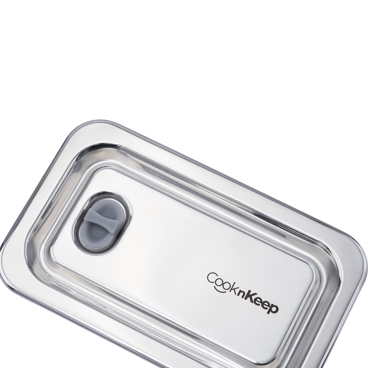 🔹 Vakumlu Çelik Kapak: Kapaktaki özel hava tahliye kapağı sayesinde yiyeceklerin tazeliği ve aroması daha uzun süre korunur.