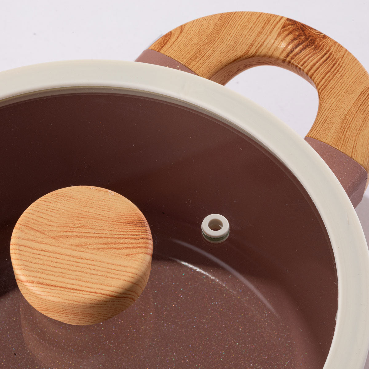 ✅ Ahşap Görünümlü Bakalit Saplar: Isıya dayanıklı, el yakmaz ve estetik bir görünüm sunar.